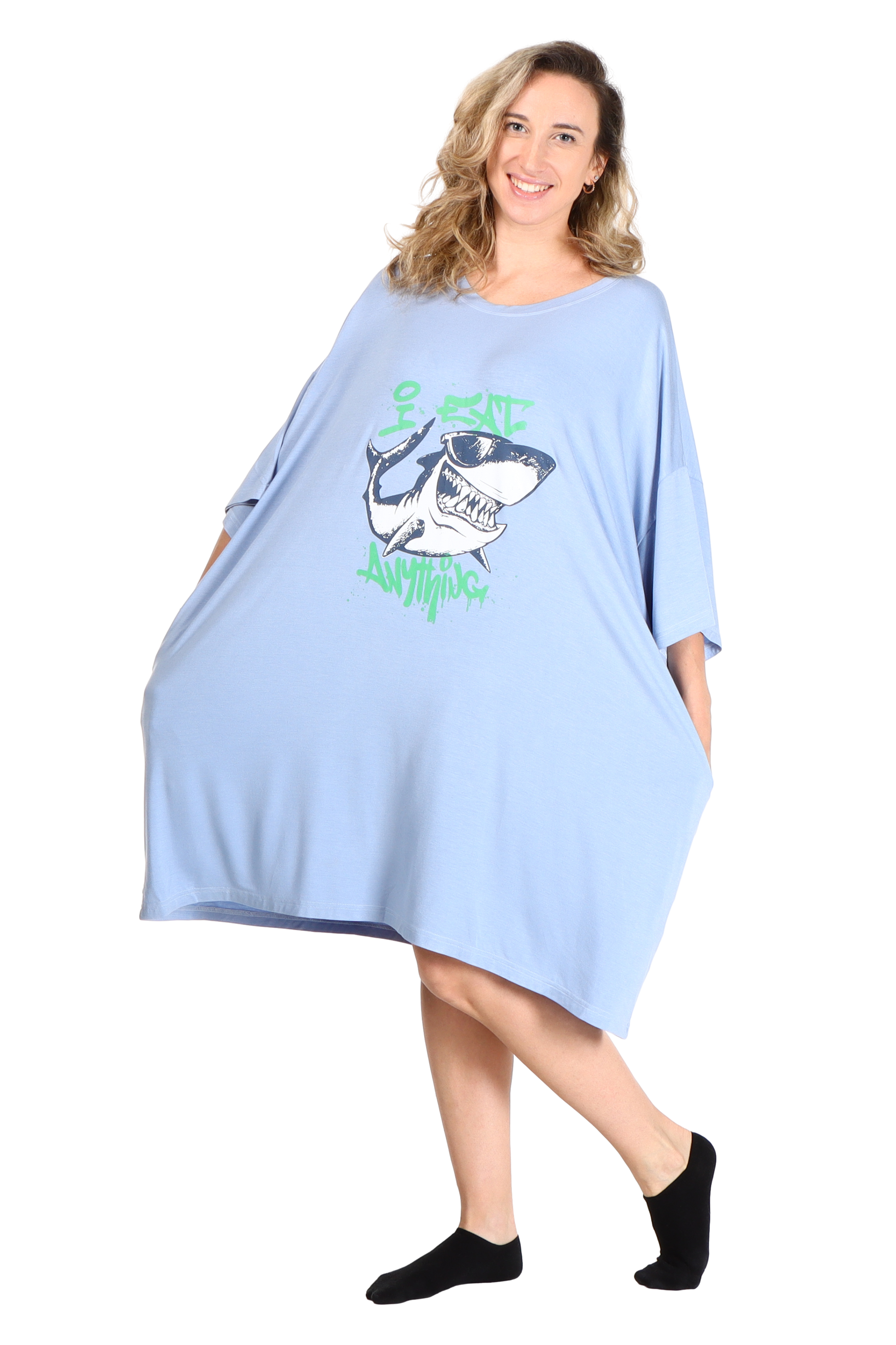 Our Jump Pocket Oversized Sleep Shirt invites you to experience a new level of comfort. Crafted from a whisper-soft material in a tranquil blue hue, this adorable sleeping shirt ensures that your nights are calming and luxurious. Slip into blissful sleep in this delightful must-have!
